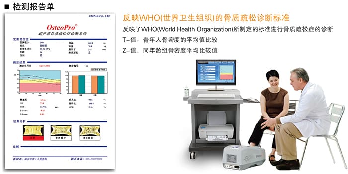 OsteoPro UBD2002A超聲骨密度儀是韓國BMTech公司2009年推向中國市場的一款內(nèi)置電腦的高性能骨密度儀產(chǎn)品,BMTech公司授權(quán)南京科進(jìn)實業(yè)有限公司為中國區(qū)總代理。該產(chǎn)品突破了骨密度檢測依賴于X射線的測量方法,利用超聲技術(shù),通過測量人體跟骨的超聲參數(shù),獲取與雙能X射線骨密度儀高度相關(guān)的骨密度數(shù)據(jù),從而實現(xiàn)了骨密度的無創(chuàng)檢測。
