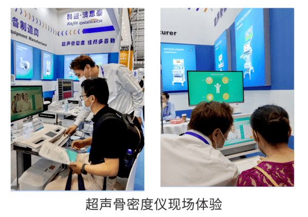 科進廠家展出多款超聲骨密度儀設備,超聲骨密度儀跟骨系列、超聲骨密度儀橈/脛骨系列、無線超聲骨密度儀系列。眾多型號的骨密度儀產品吸引眾多參觀者現場體驗。