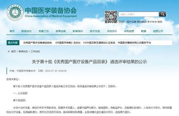 2024年7月30日,由中國醫(yī)學裝備協(xié)會組織的第十批《優(yōu)秀國產(chǎn)醫(yī)療設備產(chǎn)品目錄》遴選評審工作已完成,評審結(jié)果開放公示。由南京科進實業(yè)有限公司自主研發(fā)生產(chǎn)的動脈硬化檢測儀、人體成分分析儀全系產(chǎn)品成功入選!