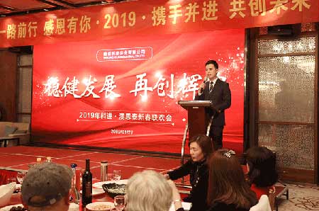 然后澳思泰總經(jīng)理俞政濤發(fā)表新年致辭,他說,2018年公司取得了驕人的業(yè)績,總銷售收入和利稅增長超過30%,共取得19項知識產(chǎn)權(quán),企業(yè)管理水平進(jìn)一步提升,他代表公司感謝全體員工、家屬和各界朋友!2019年公司要加大技術(shù)創(chuàng)新力度,以滿足用戶需求為目標(biāo),加強內(nèi)部管理,“穩(wěn)健發(fā)展,再創(chuàng)輝煌”。隨后他宣布:聯(lián)歡晚會正式開始!