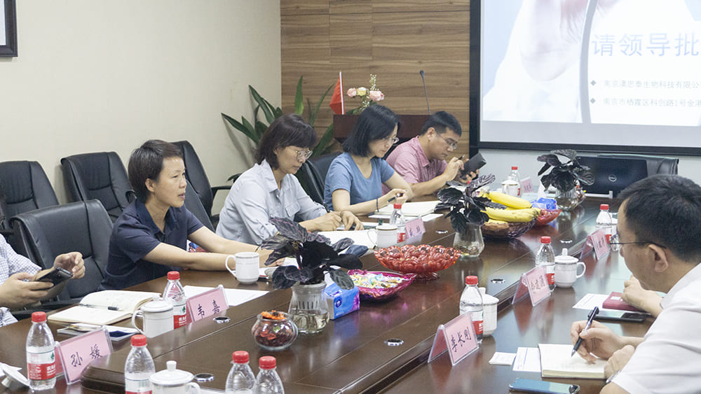 8月19日,南京市棲霞區(qū)人民政府副區(qū)長盧靜、棲霞區(qū)科技局局長盛艷、副局長韋嘉一行到南京澳思泰生物科技有限公司走訪調(diào)研,棲霞高新區(qū)管委會企服部施燕妮、孫媛等領導陪同走訪。